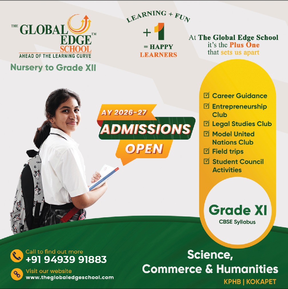 Learning goes hand in hand with creativity and collaboration at The Global Edge School, Kukatpally. Students are offered a variety of opportunities that encourage them to think, move, and create, building confidence and teamwork along the way.